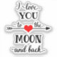 I love you to the moon and back in mixed script and uppercase serif font lettering in black with a red accent heart shot with a black arrow. Use the template to change YOU to a personal name.