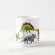 Original fine art design of a variety of Pre-Historic dinosaurs including Tyrannosaurus Rex, Hypsilophodon, Stegosaurus, Elasmosaurus, Brachiosaurus and Triceratops by artist and designer Carolyn McFann of Two Purring Cats Studio printed on a quality coffee mug for dinosaur and paleontology fans.