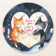 Romantic and artistic illustration of two cats entangling their tails in the shape of a heart under a starry sky. The atmosphere is warm and magical, with soft lights and a bright moon lighting the scene. The dominant colors are shades of dark and deep, such as dark blue and purple, contrasted with golden and silver reflexes. Image conveys eternal love and deep connection