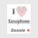 Display your love of music and the saxophone with these cool I Heart music stickers! A great gift for music teachers, musicians, or music students! The heart is made of treble clefs, bass clefs, and various music rhythm notes all in the shape of a red heart. Keep the text as is or customize to reflect what music instrument, group, or ensemble you love!