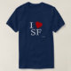 I love SF! Are you from San Francisco, California? Do you love SF? Or do you have a friend or family member who does? If so, this "I Love" t-shirt that shows love for SF is exactly the gift that you're looking for! The design features the letter "I" in white lettering with a red heart on the top and "SF" in white lettering on the bottom.