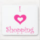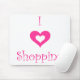 White mouse pad that says "I <3 shopping" in pink. shopping"="" in=""></3 shopping" in pink.>