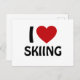 Share your passion for the slopes with our 'I Love Skiing' postcard. This simple yet striking design features the classic 'I ♥ SKIING' statement in bold black and red, capturing the thrill and love for the sport. It's perfect for sending a snowy greeting to fellow skiing enthusiasts or as a memorable souvenir from your latest ski trip.