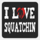 Cute sasquatch design featuring everyone's favourite woodsy creature, "Bigfoot" infront of a big red heart wit large, grunge style lettering telling everyone how much you love to go squatchin.