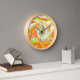 Green: Featured in the floral border, adding a natural element that further contrasts with the orange, enhancing the overall visual interest.