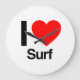i love surf large clock