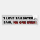 "I love tailgaters" -Said NO ONE EVER Bumper Sticker