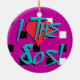 Miami Vice blue text, hot red heart, black and white graphic squares - all on a neon purple pink background. Two different designs on front and back!