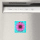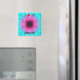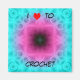 Personalized magnet for my sister, who loves to crochet. Background is my digital art design of an abstract flower in a symmetrical pattern..