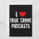 I Love True Crime podcasts card. I heart criminology podcasts about serial killers and murder plots. Criminal history is fascinating and I’m addicted to my favourite podcaster.