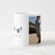 Simple and chic black and white "I love us" brush script one photo mug with personalized name.