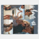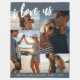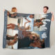 Modern blue and white "I love us" brush script photo collage blanket with personalized name and year.