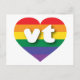 This postcard features a rainbow pride heart with the lower case letters vt, a playful abbreviation of Vermont, the green mountain state. Show your true colours, support marriage equality, and celebrate gay pride.