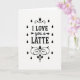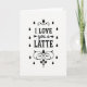 This Valentine's Day card features a black-and-white design with the message “I LOVE you a LATTE” centered on a white background. The words “I LOVE” sit above and “LATTE” sits below, both in large, all-caps serif letters in black. Between them, the smaller words “you a” appear in a flowing cursive style, also in black, with small arrow shapes on each side pointing inward. On the left and right of the main message, there are neat vertical rows of small black droplet shapes that hint at coffee drops and add a steady pattern. At the very top and bottom, matching curled flourishes frame the design like simple scrollwork. The overall look is sharp and balanced, with a cozy coffee-themed love note feel that’s easy to read and sweet 💕❤️. Hope it helps you share your Valentine’s Day feelings with someone you care about.