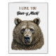 Extra large card with a big brown bear that says, I Love You, Bear-y Much. Flirty card for romantic occasion, such as Valentine's Day or an Anniversary or just to say, I love you.
