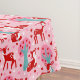 Add a sweet touch to your table with this Valentine's Day themed tablecloth. It features an all over pattern of cute deer in red and white against a pink background that's decorated with hearts and pretty trees.