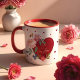 I Love You Floral Valentines Red Heart Monogram Mug