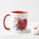 Celebrate love and beauty with our adorable floral heart Valentine's coffee mug. Featuring a vibrant red heart adorned with our delicate, hand-drawn flowers, this mug is a true expression of affection. The phrase “Je vous aime” I love is is elegantly written in a faux gold script, adding a touch of sophistication to this charming design. Perfect for Valentine’s Day, gifting to someone special, or treating yourself, this mug radiates warmth and love. You can even personalize it with your monogram for a unique, thoughtful touch. Whether you're enjoying your morning coffee, tea, or a cozy hot cocoa, this mug will add a sprinkle of joy to every sip. A delightful way to celebrate love, kindness, and the little moments that make life special! Design and hand-drawn artwork by © Moodthology Papery.