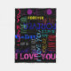 Repeating ""I love You"" & ""forever " with amazing and various lettering. Design on fleece blanket with dark background. You can easily change text (font, colour, size and position) and background colour by clicking the customize button.