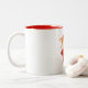 Your loved one will feel so special when you present them with this “I love you” personalized coffee mug. This two toned mug has a white background that has an illustration of a beautiful brown fox in the middle. The fox has a red bow at the top of her head. She is holding a heart that says “I love you” in white text. Underneath is a template where you can enter any name or text that you like. The font is presented in red but it can be any colour you choose.