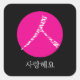Indie Artist WindyDesign brings you this woodcut of the Korean Hangul pronounced like S Words say I love You in Korean 사랑해요 White letters on pink circle on a black sticker for your water bottle or your journal.