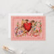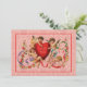 Celebrate your love with this cupid design and loving message. Four cupids embrace a bright red heart as they flutter through the air surrounded by roses and colourful ribbons. This version features a pink brocade background, a hint of shadowing to lift the silhouette off the background and the greeting ‘ I Love You’. It’s a perfect way to declare your love.