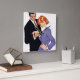Artist:Joe DeMers | Man holding the hand of a woman in a purple suit with red hair