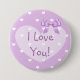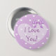 I Love You Purple Hearts White Bow Button for any romantic occasion. Pin it on a teddy bear or gift!