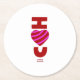 You can admire my Valentine's Day drawing and romantic drawing that I call, "I Love You," of a red and pink striped heart, added onto this round paper coaster.