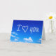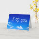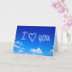 "I Love You" written in the sky, beautiful blue sky with white fluffy clouds, greeting card.