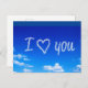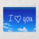 "I Love You" written in the sky, beautiful blue sky with white fluffy clouds.