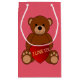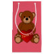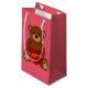 Cute, vintage picture of a teddy holding a heart with "I Love You" written on it, is featured on the front and back of this small gift bag. This colourful gift bag is perfect for tiny or small gifts for Valentine's Day, anniversaries and more!
