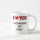 I Love You Thinking Of You mug to let your wife or girlfriend know how special she is to you. Heartwarming message for your daughter, sister, mom, grandma, aunt, coworker ... anyone you want to show how much you love her and think about her. Great gift for her birthday, anniversary, Mother's Day, Christmas ... any occasion or just because you want her to know you care for her. I Love You Thinking Of You mug lets her know she is loved.