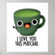 I Love You This Matcha Funny Drink Puns features a cute mug of green matcha with arms outstreched saying he loves you that much . Perfect Puns gift for family and friends who love cute matcha puns.