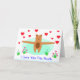 Love is in the air. This brown bear stretches his hand really long to say "I love you this much". Red hearts are floating around him. He is ready to give much of love to the recipient of this card. A wonderful card to express your love to your special one.