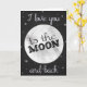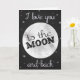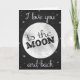 "I love you to the moon and back" Valentine or love declaration Card with moon and stars on a black background.