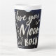 Whimsical text lovingly designed to send a message to a loved one. I love you to the moon and back in white script on a galaxy-inspired background.