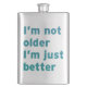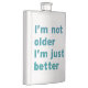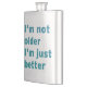 The product is a good size and came exactly as it was pictured. The lid is not attached to the flask, which could be dangerous on drunken nights... The print came out surprisingly well and looks very sharp. Would definitely recommend.