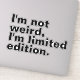 Grab this " I’m not weird I’m limited edition " design funny sayings tee shirt to show your sense of humour by wearing this basic cool text style. for Black and White Contemporary Art Lovers. I'm sure that it can spark many conversations and will help with breaking the ice. This design is a great gift idea for friends or family and also makes a great birthday, holiday gift, or Christmas present. (YOU CAN CHANGE AND CUSTOMIZE THIS TEXT DESIGN OR ANY TEXT YOU WANT IN MY STORE!).