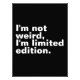 Grab this " I’m not weird I’m limited edition " design funny sayings tee shirt to show your sense of humour by wearing this basic cool text style. for Black and White Contemporary Art Lovers. I'm sure that it can spark many conversations and will help with breaking the ice. This design is a great gift idea for friends or family and also makes a great birthday, holiday gift, or Christmas present. (YOU CAN CHANGE AND CUSTOMIZE THIS TEXT DESIGN OR ANY TEXT YOU WANT IN MY STORE!).