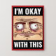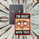 Pin it, wear it, and let everyone know you're totally holding it together (barely). This button features a frazzled cartoon face and the deadpan phrase **“I’M OKAY WITH THIS”** on a bold darker red background—perfect for backpacks, jackets, lanyards, or emotional spirals.