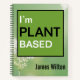 Simple design suitable for vegetarians or vegans. "I'm Plant Based" in classic black and white on a seaweed green. Pastel flowers background with bee (front and back cover). Customize with your name. Available in different sizes. This sample is ruled, but there are several different inside paper designs, including graph, recipe and sketch (blank). The spiral itself has six different colour choices.