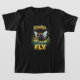 A cheerful cartoon fly with oversized red eyes stands proudly on a lily pad beneath a sparkling night sky, celebrating humor, confidence, and playful charm.