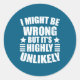 I May Be Wrong But It's Highly Unlikely Funny Classic Round Sticker