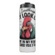 This graphic illustration features a stylized rooster with a serious expression and a large red comb at the centre. The surrounding chickens are simple black-and-white line drawings. The text "I MAY LOOK CALM BUT IN MY HEAD I'VE PECKED YOU 3 TIMES..." is written in bold lettering, giving the image a humourous and bold feel.