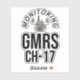 GMRS radio onboard, monitoring Channel 17. CH-17 GMRS sticker for Jeep, etc.