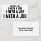 I NEED A JOB BUSINESS CARD