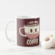Mug version, With artwork featuring a cute but angry little coffee mug with tired bags under it's eyes. It really needs more coffee! Perfect for people who love to drink coffee a lot! Coffee lovers who definitely need more coffee to be productive in the day will definitely appreciate this cute and funny design! Artwork by Sarah Richford ( TechraNova )