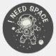 "I Need Space" - Astronaut Alone Time Classic Round Sticker