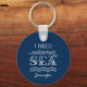 The perfect gift for a beach-lover or a nautical fan, this navy button key chain features the words "I Need Vitamin Sea". Use the template to easily customize with any name for a truly unique and personal touch.